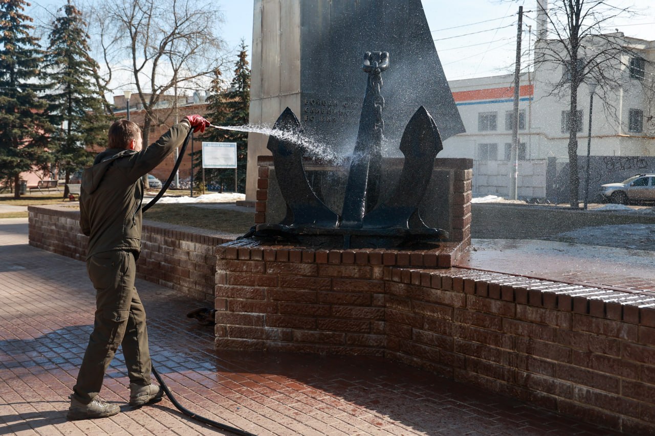 Памятники и мемориалы начали мыть в Нижнем Новгороде после зимы
