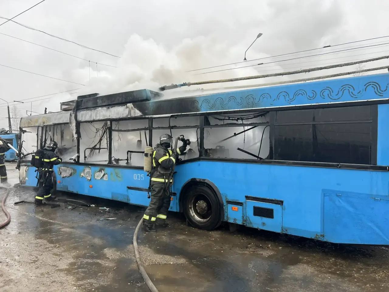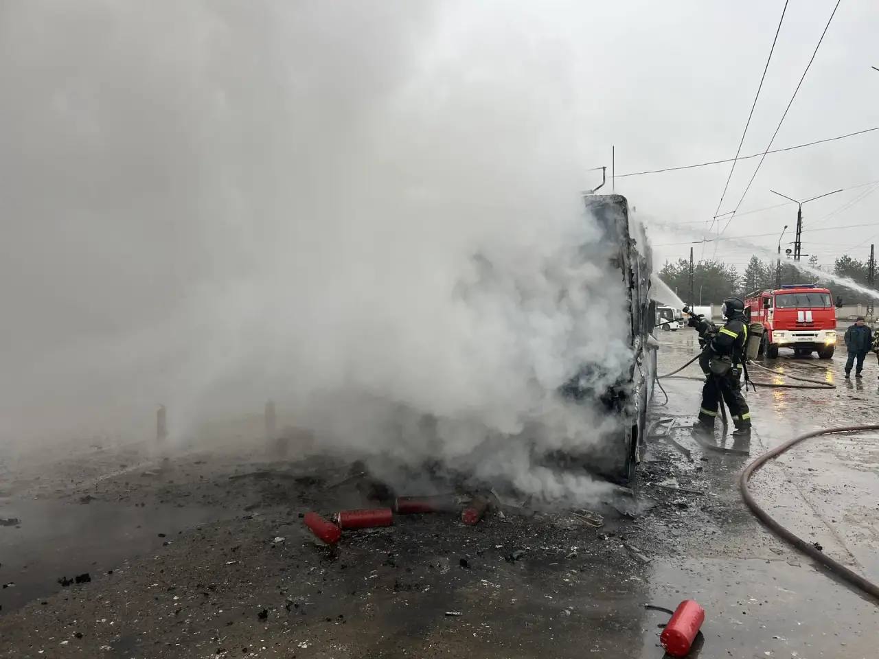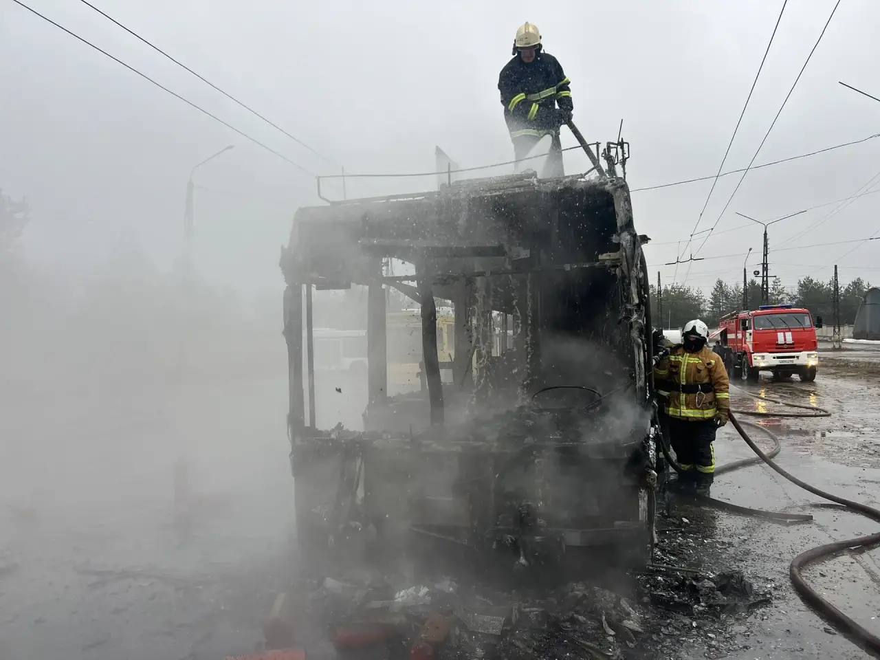 Возгорание произошло на Нижегородском шоссе, на территории троллейбусного депо сегодня утром. Погибших и пострадавших, к счастью, нет.