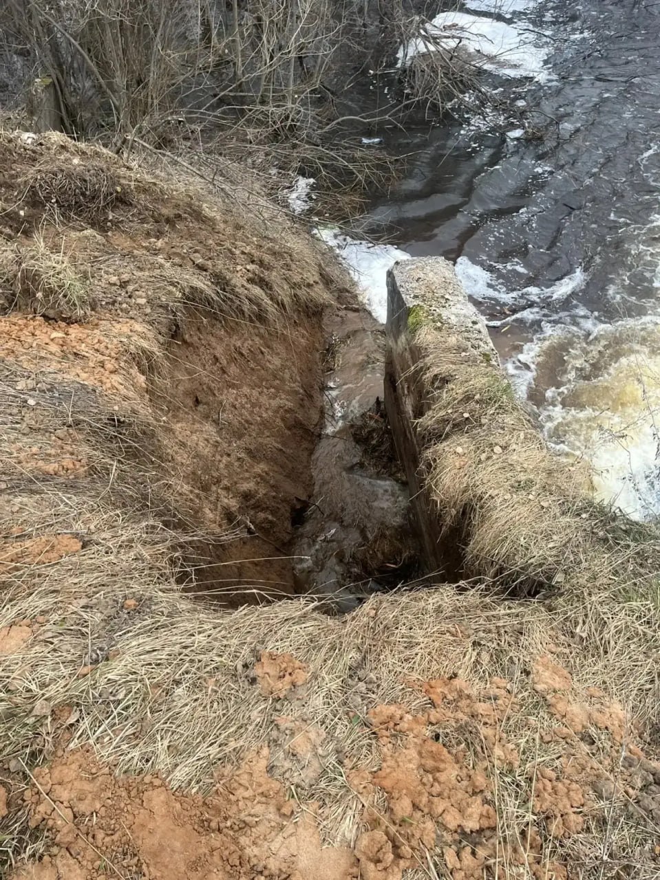 В деревне Малое Рыбаково из-за паводка и таяния снега частично обрушилась водопропускная труба у пруда