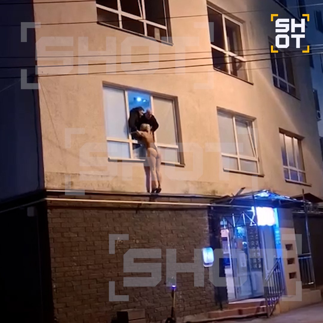 Путана в стрингах повисла на окне дома в Нижнем Новгороде, когда полицейские пришли с рейдом в бордель