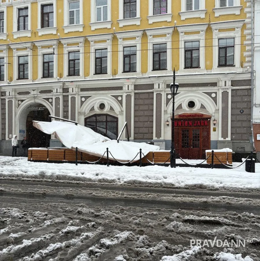 Вся боль этого дня в одном фото — летняя веранда кафешки на Рождественской не выдержала напора апрельской метели. Фото смотрите у нас в MAX.ПРАВДА в вашей ленте и в MAX// Нижегородская правда | Нижний Новгород