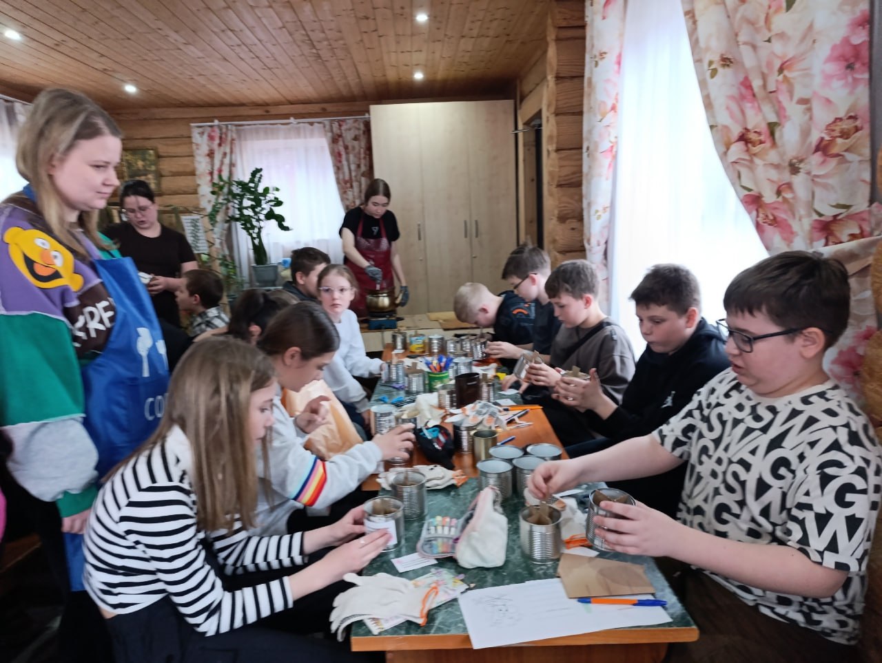 Ученики 5«Г» класса школы №6 им. К. Минина приняли участие в мастер-классе в православном центре. Ребята изготовили блиндажные свечи, сплели маскировочные сети и написали множество писем для военнослужащих.