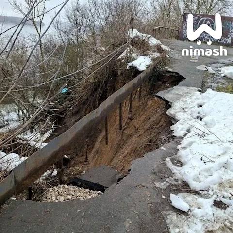 Дорога на Пролетарской в Павлове обвалилась из-за таяния снега. Обычно по ней ходили люди.