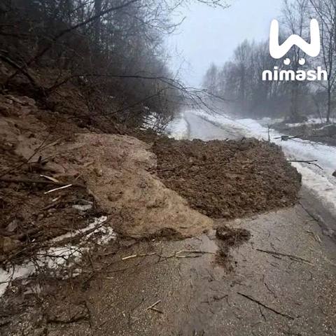 Там же произошёл сход грунта. Сейчас движение на этом участке закрыто. Специалисты осматривают склон.