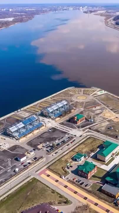 Каждую весну в паводок становится видна граница слияния Оки и Волги в Нижнем Новгороде