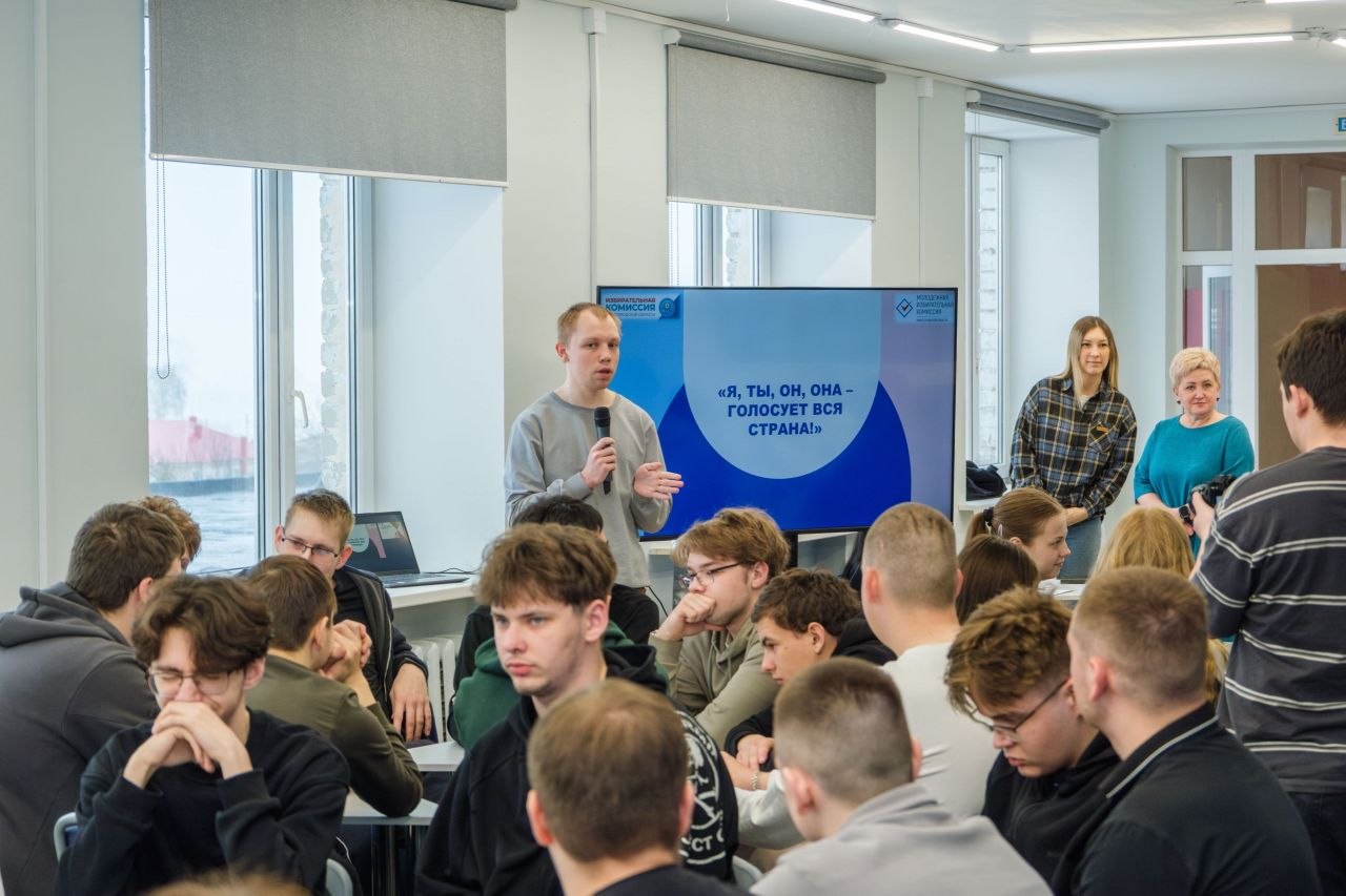 В рамках Дня молодого избирателя 3 апреля 2026 года член молодёжной избирательной комиссии Нижегородской области Алексей Соков провёл для студентов старших курсов Перевозского строительного колледжа интеллектуальную игру «Я, ты, он, она – голосует вся страна!».