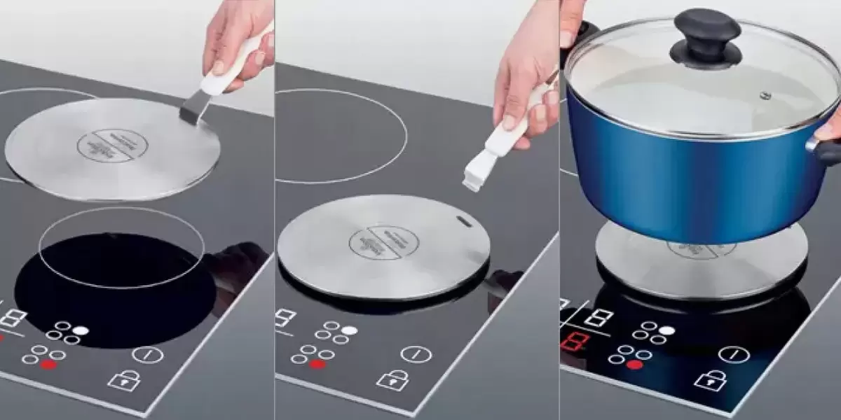 - Индукционный адаптер: Это специальный диск, который кладется на конфорку. Он нагревается и передает тепло кастрюле. Такой вариант позволяет использовать любую посуду, но может замедлить процесс приготовления.