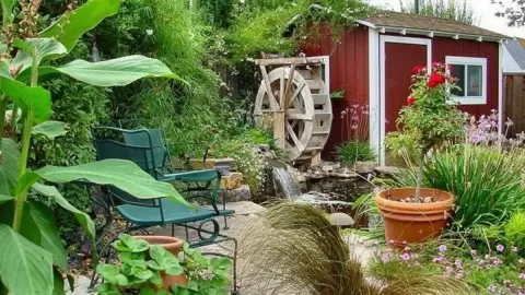 На загородных участках нередко можно встретить впечатляющие конструкции, которые демонстрируют креативность их владельцев. Например, многие мечтают о прудике, который добавляет в атмосферу дачи нотку романтики. Но некоторые садоводы идут дальше — они создают оригинальные мельницы. Это не только привлекательный элемент декора, но и возможность наслаждаться звуками бурлящей воды вечерами у пруда.