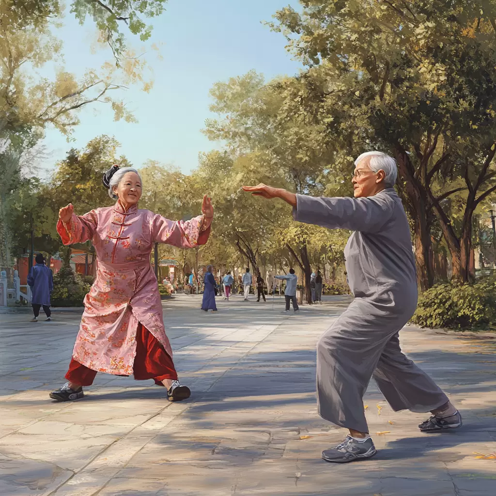- Тайцзи — важный элемент их жизни. Медленные движения укрепляют суставы и улучшают координацию.