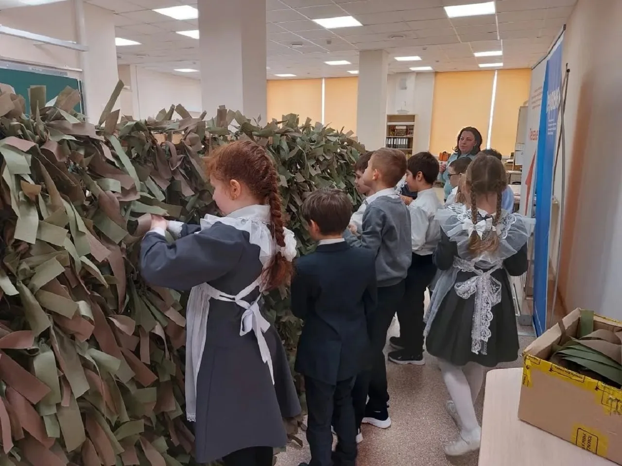 Арзамасские школьники сплели маскировочную сеть для бойцов