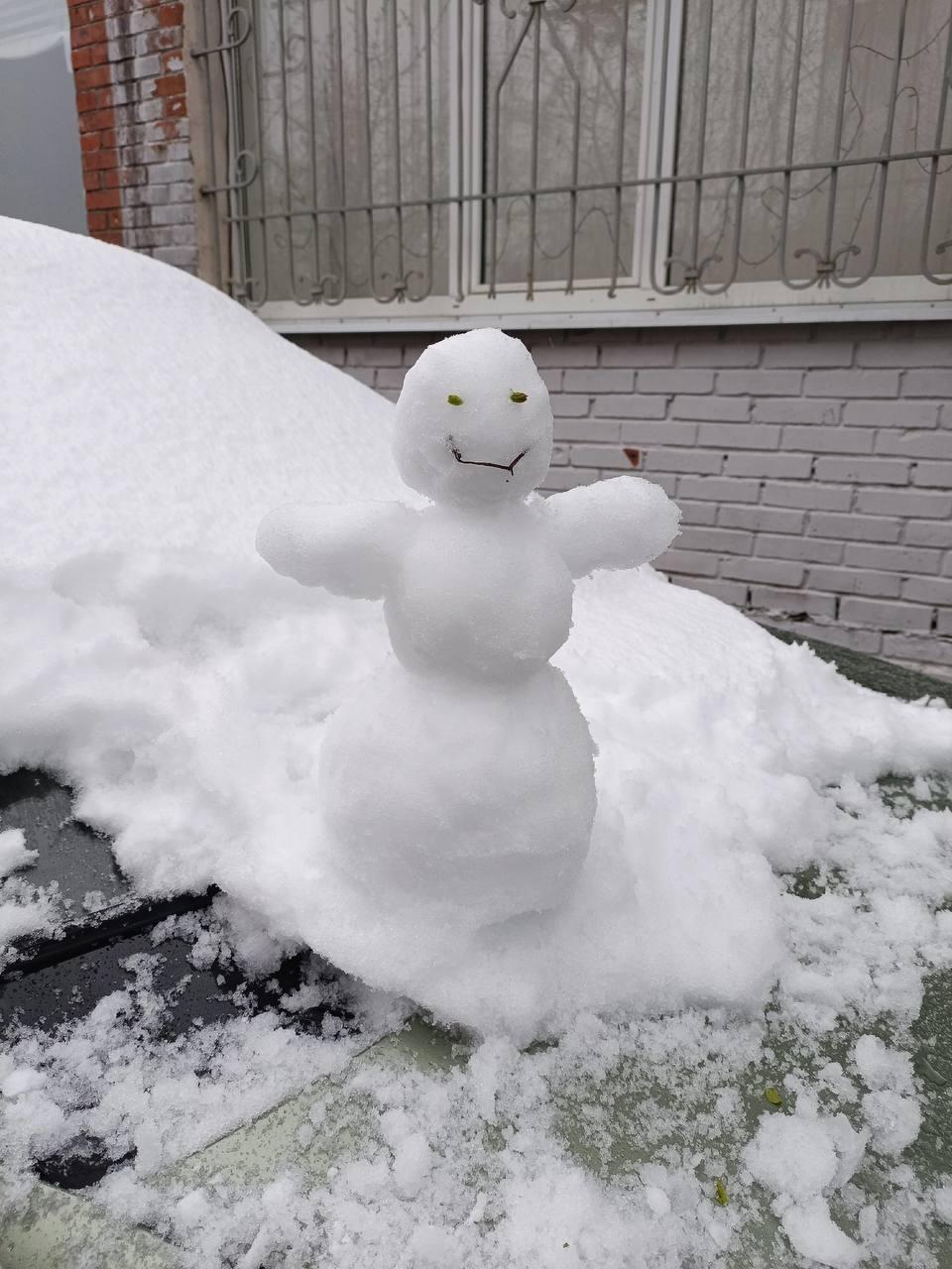 Местные жители не отчаиваются и лепят во дворах апрельских снеговиков.