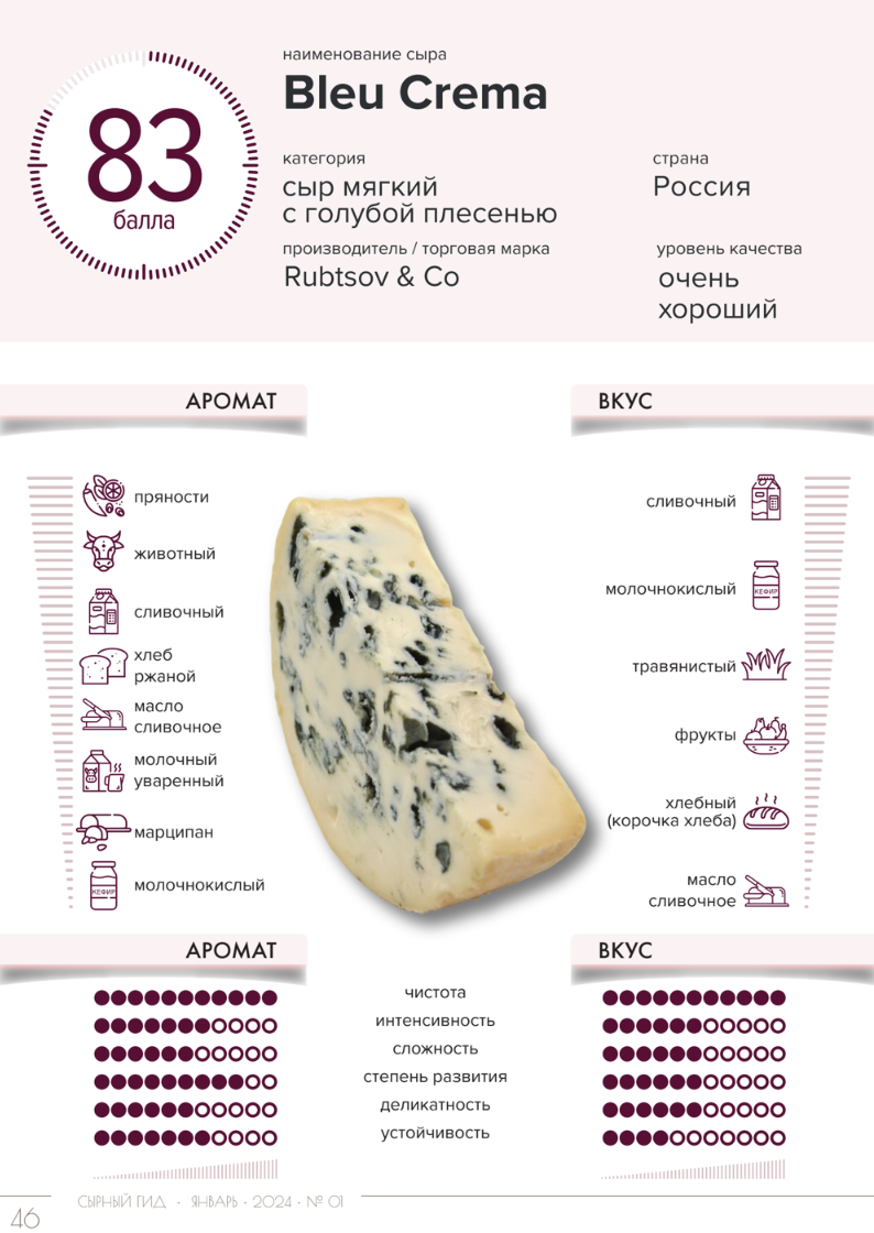 - Bleu Crema, Rubtsov & Co: Мягкий сыр с выраженной голубой плесенью.