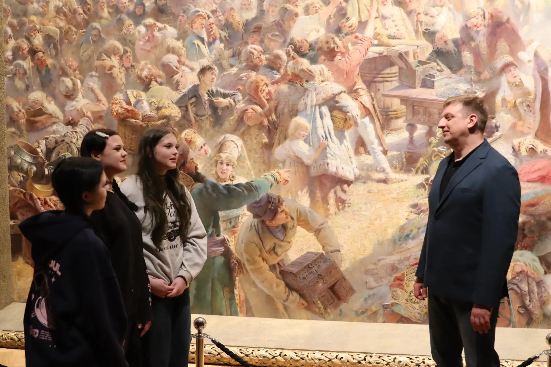 Алексей Кожухов дал старт экскурсии в зале художественного музея, где демонстрируется уникальная картина Константина Маковского «Воззвание Минина». Депутат рассказал об участии нижегородцев в формировании народного ополчения, освободившего Москву от польских интервентов.