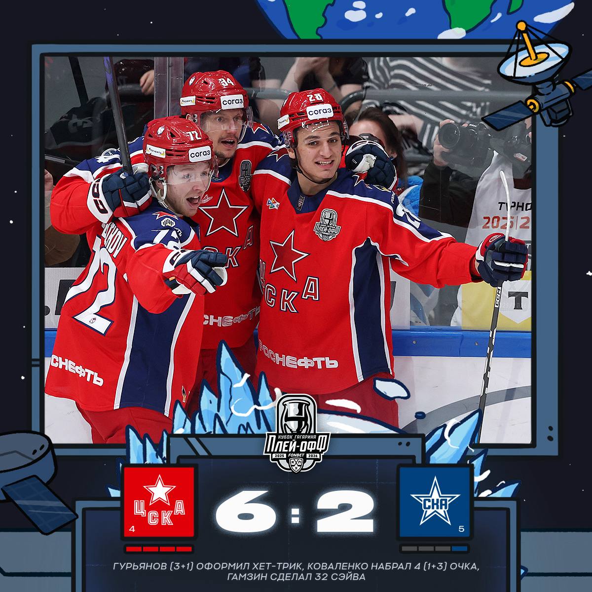 Счет в серии до четырех побед стал 4–1 в пользу ЦСКА. Из Западной конференции в 1/4 финала плей-офф ранее также вышли нижегородское «Торпедо» и минское «Динамо».